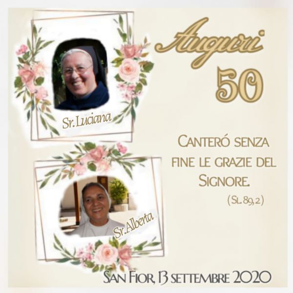 El 13 de septiembre de 2020, hna. Alberta Zotti y hna. Luciana Stella celebran los 50 años de consagración religiosa. La celebración será presidida por Mons. Corrado Pizziolo, obispo de Vittorio Veneto, en la iglesia parroquial de San Juan Bautista en San Fior a las 4:00 pm.